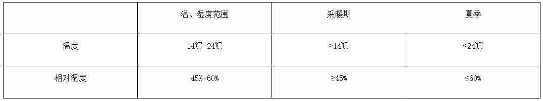 國家檔案局《檔案庫房技術(shù)管理暫行規(guī)定》對檔案庫房(也適用于機(jī)關(guān)檔案室)溫濕度要求做了如下明確界定:檔案庫房(含膠片室、磁帶室)的溫度應(yīng)控制在14~24℃,有設(shè)備的庫房日變化幅度不超過2℃,相對濕度應(yīng)控制在45~60%,有設(shè)備的庫房日變化幅度不超過±5%。